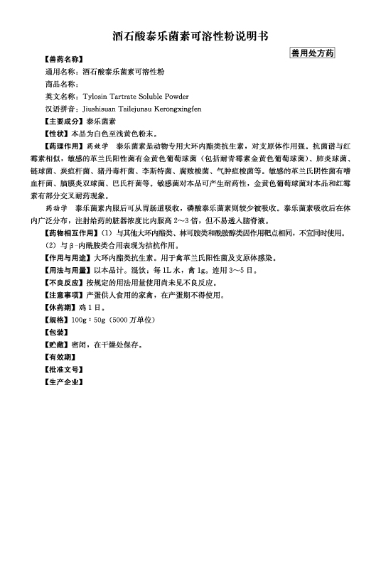 酒石酸泰乐菌素可溶性粉